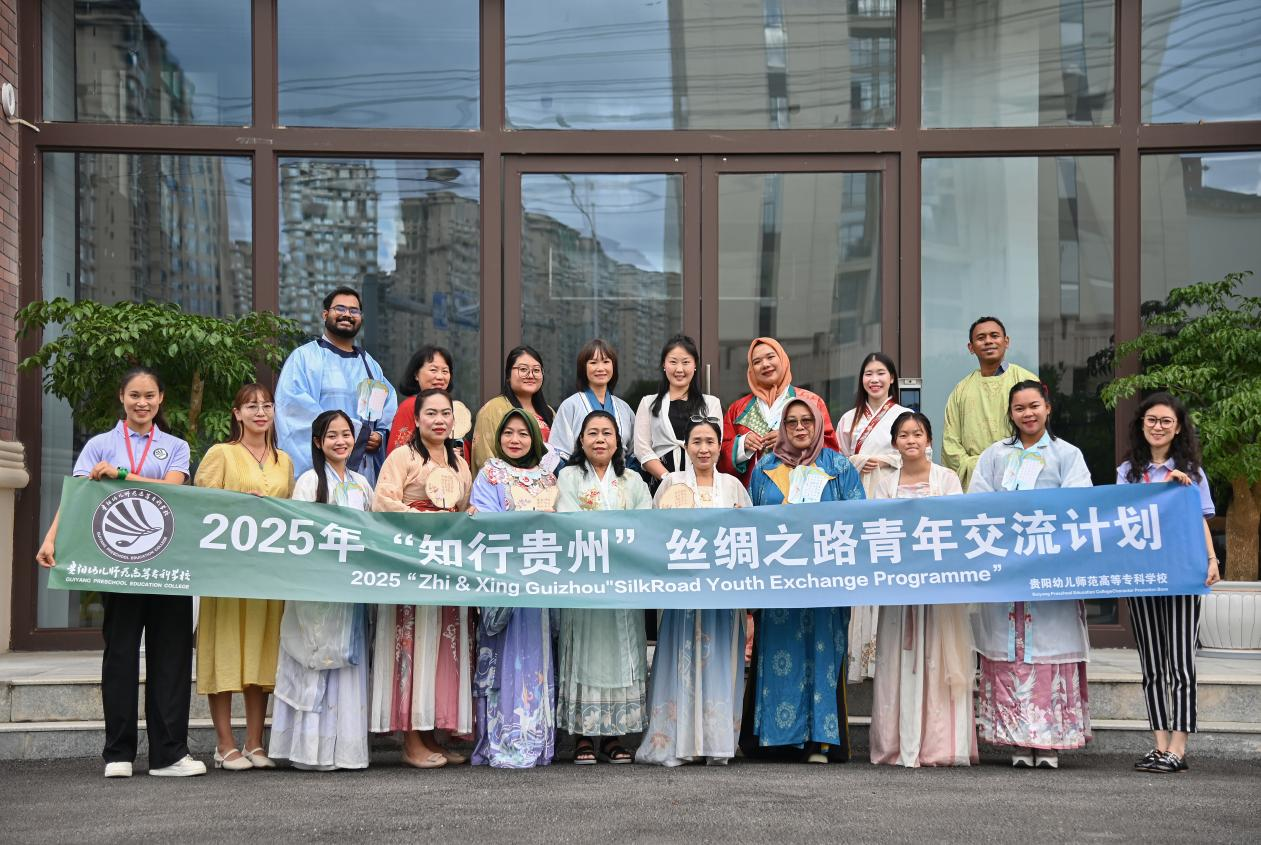 2025年7月25日,中国-东盟教育交流周“知行贵州”系列活动进入第二天,一场以文化深度体验为核心的交流盛宴在贵阳幼儿师范高等专科学校精彩上演。该校基础教学部文佳主任带队,为来自东南亚各国的东盟幼儿教师技能大赛指导老师与选手们精心设计了“舌尖上的贵州”“诗意解暑——手作扇面体验”“汉服文化漫步”三大主题活动。在接待员与翻译团队的全程协助下,中外师生于味觉、视觉与沉浸式体验中,共赴一场中国传统文化的“约会”,文化共鸣在互动中悄然升温。