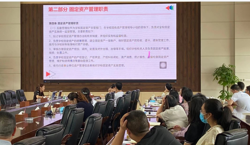 为更好地做好学校资产管理工作,提升全校各部门资产工作水平,帮助各部门快速学习资产管理相关规定,6月22日下午,后勤管理处组织召开资产管理制度学习培训会,各部门负责人和资产管理员参加了会议。