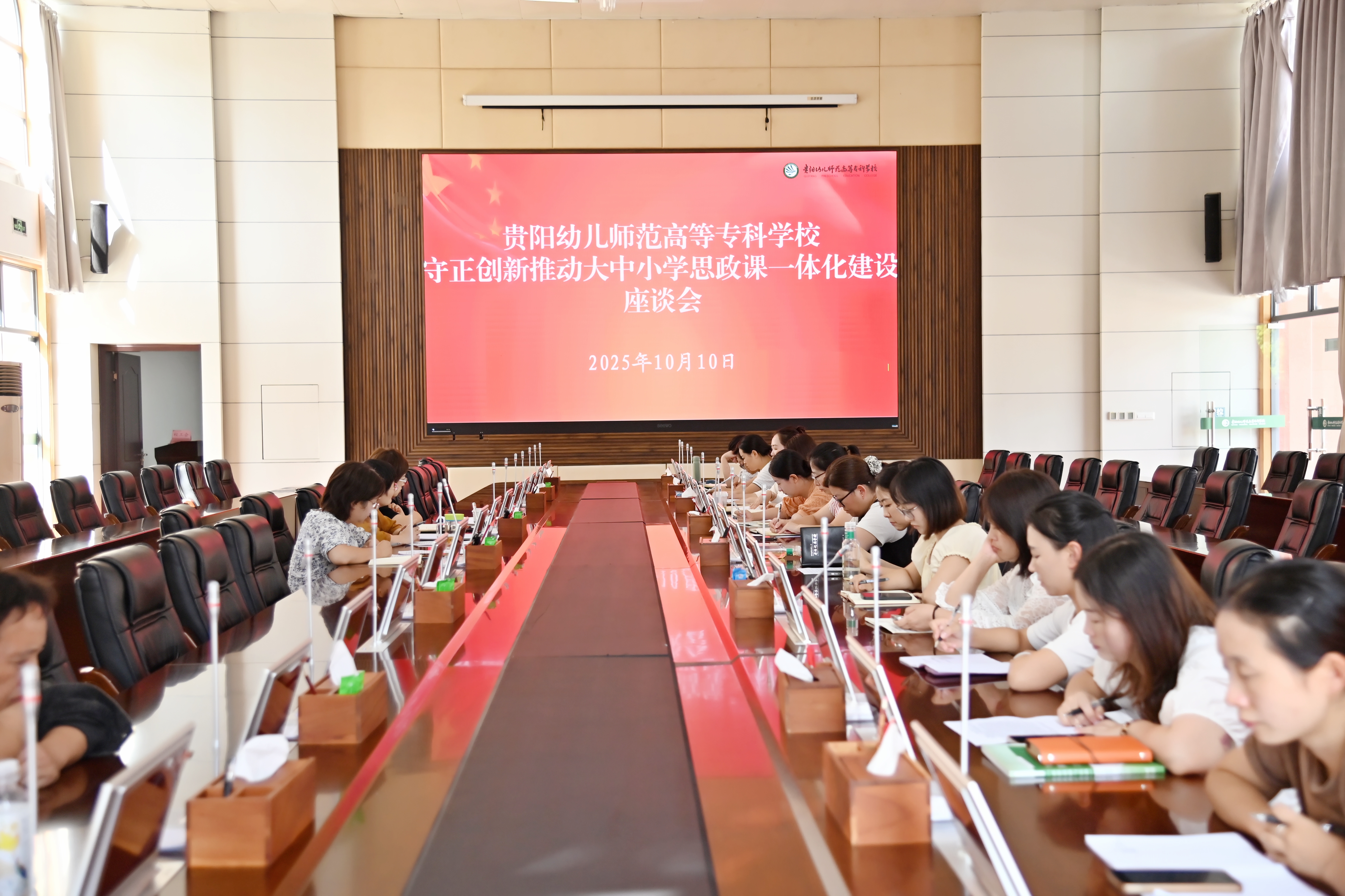 幼儿阶段是思想启蒙的“第一粒扣子”,其思政教育质量直接关系大中小学思政课一体化建设的根基稳固。贵阳幼高专立足四十余年学前教育办学积淀,坚持以习近平总书记“守正创新推动思政课建设内涵式发展”重要指示为根本遵循,聚焦“知行合一”“蒙以养正”的核心理念,为筑牢学前思政教育防线、衔接一体化育人提供“幼专方案”。10月9日,徐麟书记在贵州师范学院调研时强调,要守正创新推动贵州大中小学思政课一体化建设取得新成效。学校将严格落实省委主要领导安排部署,在全省学前思政启蒙中扛起“源头责任”、彰显“干流担当”:一是守牢思政课程主阵地。坚持立德树人根本任务,把理想信念教育贯穿教学全过程,将习近平新时代中国特色社会主义思想转化为具象化教学内容,以鲜活案例增强感染力,创新教学模式,让学生在互动中深化认知、坚定信仰,切实发挥思政课育人关键作用。二是深耕课程思政责任田。结合学前教育专业特色,将思政元素与专业课程深度结合,培养师范生以儿歌传唱红色历史、用绘本讲述家国情怀、借角色扮演传递诚信友善等教学能力,确保未来的幼儿教师能以“儿童视角”将爱党爱国转化为幼儿可感知的生动内容。三是织密思政教育协同网。积极打造“马院+书院”协同育人模式,联合省内大中小学挖掘我省红色文化、阳明文化、民族文化和屯堡文化,建立思政启蒙实践基地,开发更多适合幼儿的思政启蒙素材,让本土文化成为贯通各学段的思政纽带。四是建强思政师资队伍主力军。充分发挥专业优势,全力打造“懂学前、善思政”的专业师资队伍,切实把学前思政教育做深做实,为大中小学思政课一体化建设夯实“起点根基”,为培养担当民族复兴大任的时代新人厚植学前教育沃土。