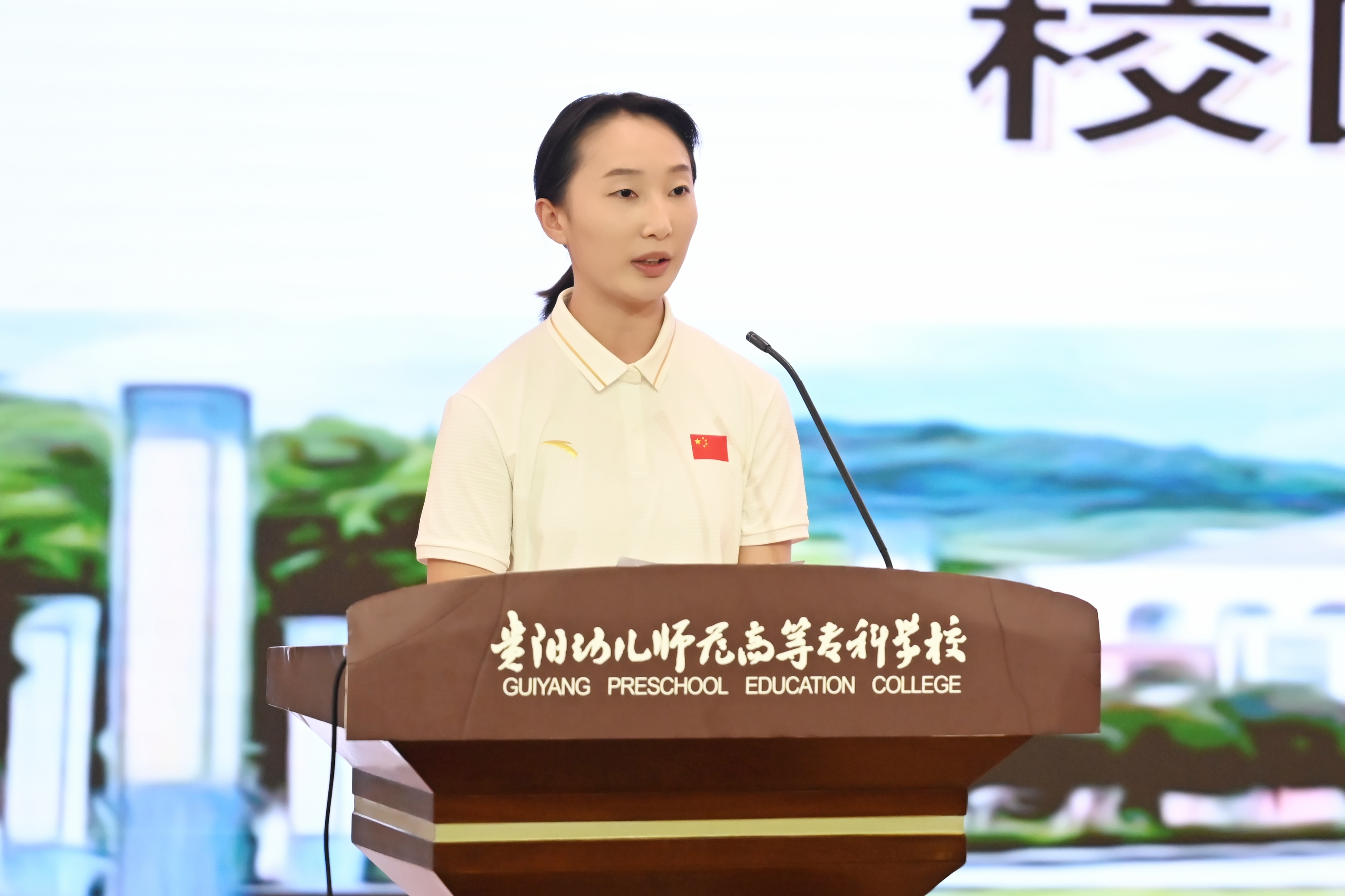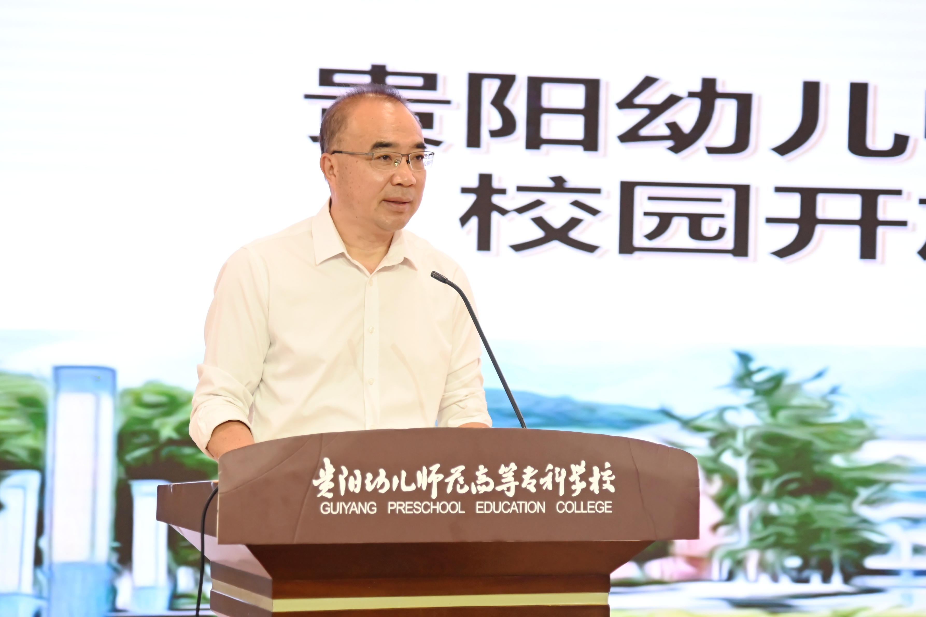 李华荣在致辞中谈到,自办学以来,贵阳幼高专已走过四十多个春秋。一代又一代幼高专人始终坚守教育领域,怀揣着赤诚热忱与育人梦想,以匠心深耕教育,用行动践行使命,为贵州学前教育事业输送了大批专业人才,助力基层学前教育质量提升,在全省学前教育事业发展进程中留下了坚实的“幼专印记”。他表示,为了让大家更深入地认识学校,此次开放日学校精心筹备了系列活动,既有教学场景的直观呈现,也有校园文化的沉浸式体验。他衷心希望,这次校园开放日能成为各位老师、同学了解幼高专的重要窗口,让大家在这段旅程中感受到学校的办学温度与育人特色,对学校的专业建设、校园生活、发展理念有更全面的认知。