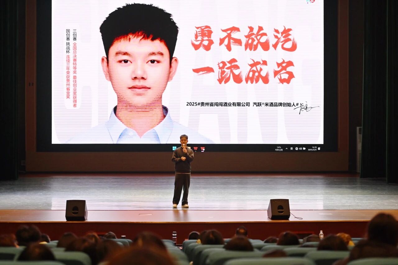 本次活动,实验实训中心特别邀请到贵州省闯闯酒业创始人龙良分享了从大学生创新创业大赛起步,一路斩获"三创赛"全国特等奖的成长故事。他的项目《闯四方——全国首款青年低度竹荪酒》已走向市场,并有产值体现。他说,创业就是不断闯关,学校教会不仅是技能,更是敢闯会创的底气。贵州师范学院2024年中国国际大学生创新大赛红旅赛道金奖项目《踢出她未来》李显娅同学进行项目分享,她用足球改变乡村女孩命运的故事,深深打动了每一个人的心。