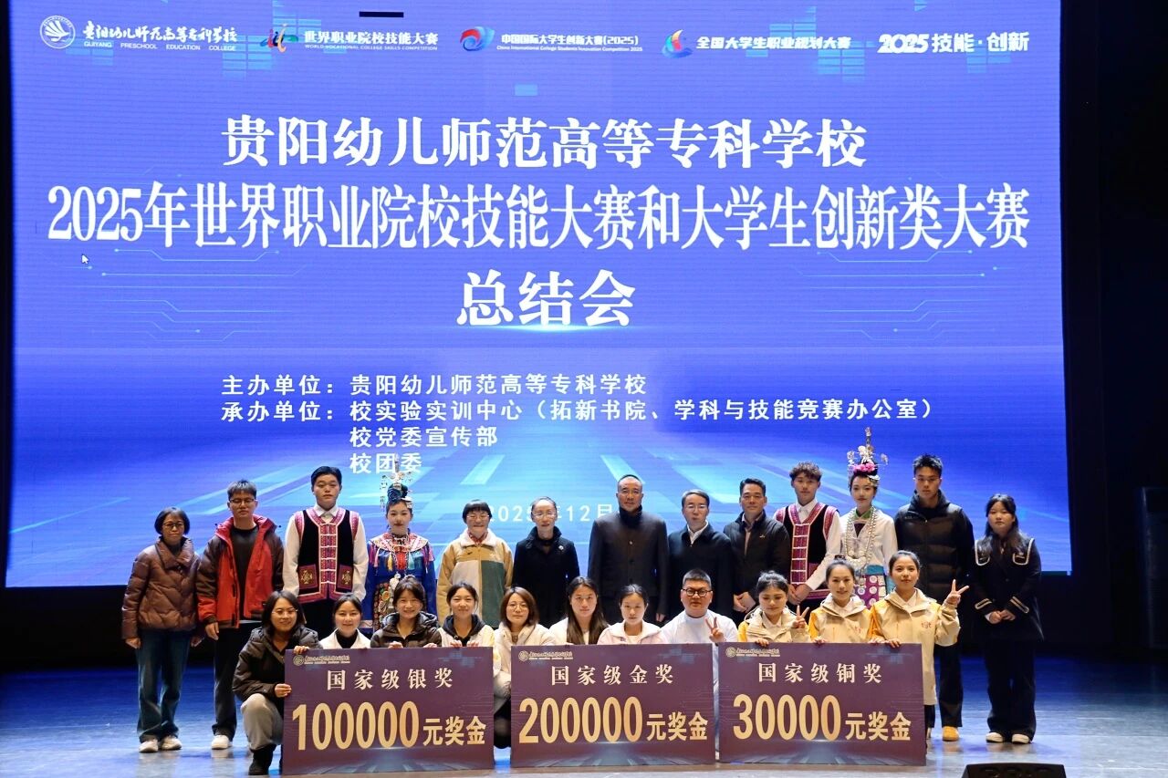 活动最后,领导嘉宾与获奖团队代表合影。镜头定格的不仅是笑颜,更是贵阳幼高专人“以赛促学、以赛促教、以赛促创”的坚定信念。未来,学校将继续以技能大赛为抓手,锤炼师生过硬本领,厚植工匠精神,为区域教育事业发展与技能人才培养注入更加强劲的动力,让更多学子在技能成才、创新逐梦的道路上绽放光彩。