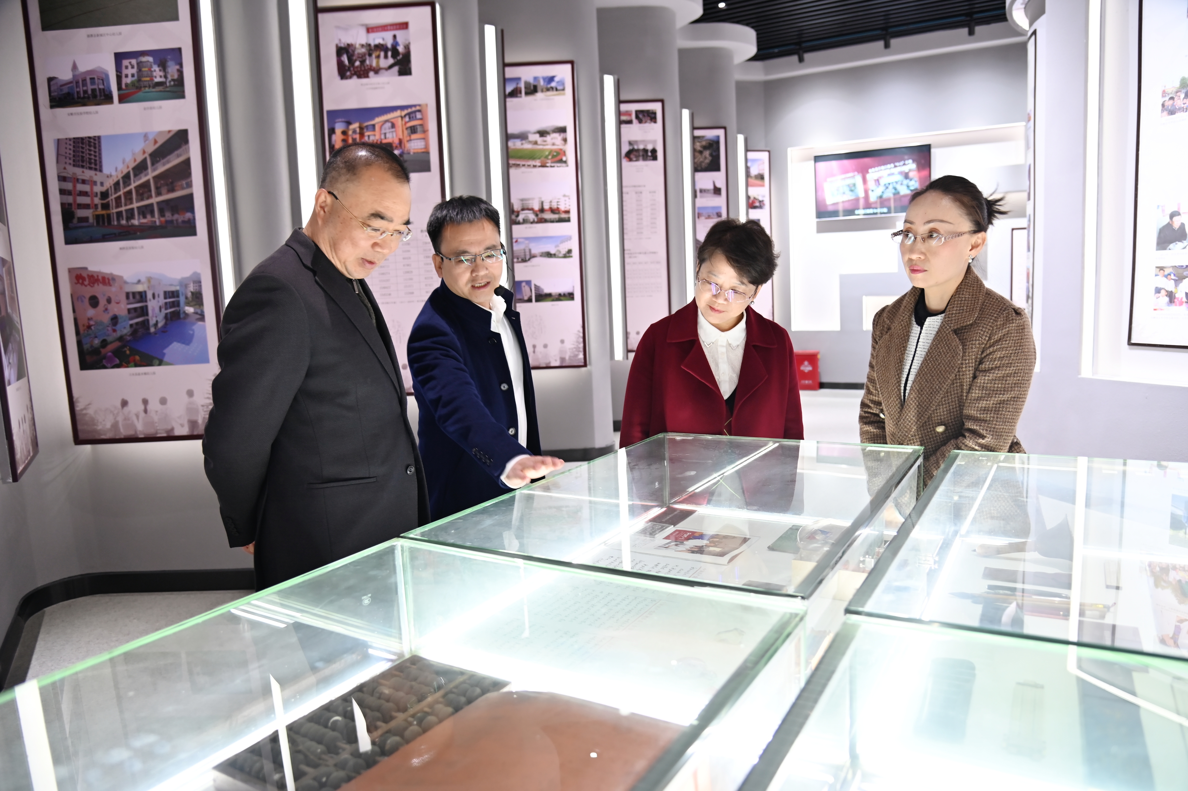 在贵州师范学院党委书记战勇、校长王蜀黔的陪同下,李华荣一行实地参观了贵州教育史馆、创新创业学院、印山书院及美育实践基地,详细了解了贵州师范学院在创新创业教育、书院制建设、文化传承与美育实践方面等方面的特色成果。