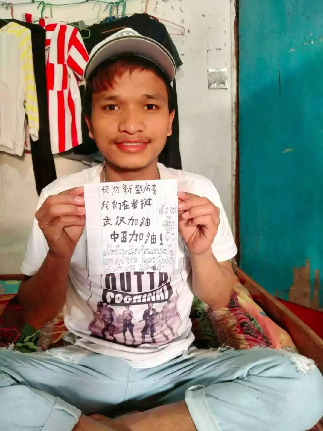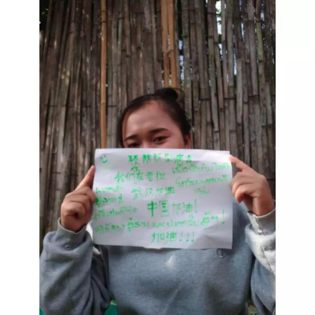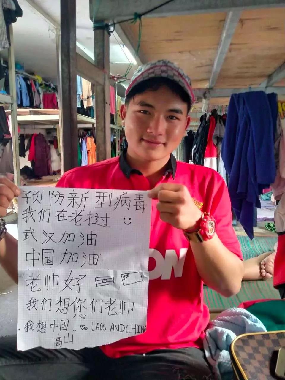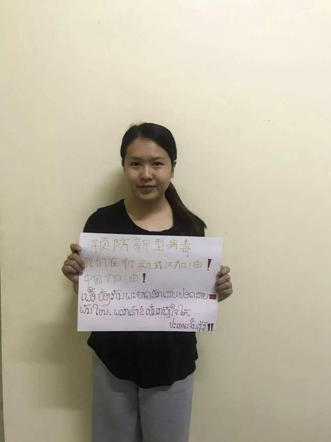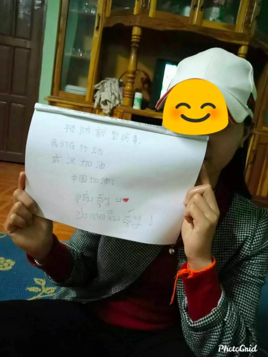 来自我校2018级和2019级的老挝汉语班留学生们用中文和老挝语写下与中国肩并肩、共战疫的祝福语。在祝福的话语中,有学生用汉字表达了对中国的期盼和老师的思念,希望中国能顺利度过此次疫情,他们愿与中国并肩作战。