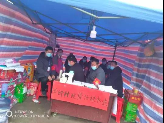 在卡点设置初期,条件艰苦、设备也简单,仅仅只有一把雨伞,一张桌子,没热水喝,没火取暖,每天早中晚三碗方便面。防护物资也十分紧缺,我们有些队员,一个口罩都戴黑了也没有换,后来慢慢地得到各级政府部门、社会人士的关心和援助,条件才有所改善,他们给我们送来了矿泉水、方便面、水果、木炭等生活物质。特别是在我们卡点附近的一家猕猴桃种植大户,主动给我们提供了用餐的条件和环境,从此我们才有了热水喝,热饭吃。每每有村民主动给我们送菜送饭、社会热心人士开车送水送方便面,我们都无比动容,只要大家团结一致,再强大的困难,我们也能挺过去。