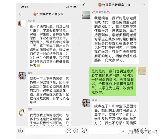 目前,共性学习已经初见成效,通过此次交流会的开展,公共美术教研室的教师们深刻意识到,线上教学与线下教学的结合已经逐渐发展成常态,在这种变化中,教师们不仅可以提高授课效率,而且更有益于解决学生的重难点问题。会后,教师们纷纷表示通过对网课的不断摸索和学习,未来会对课程进行进一步的调整和完善,将以学生为主导,多元化促进教学质量的提升!