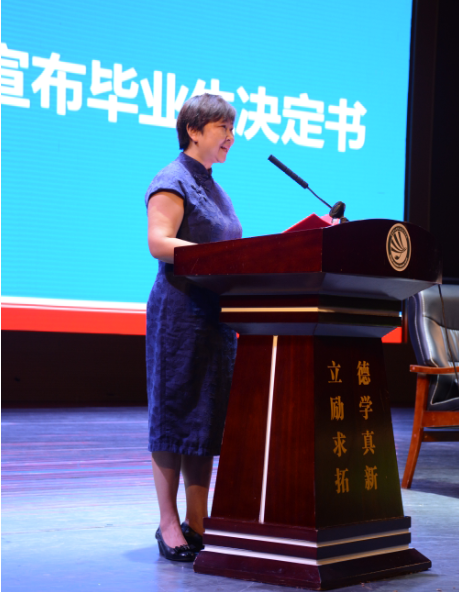 副校长翟理红宣读2020届毕业生决定书。2020届毕业生经过在校几年的学习,根据学校管理规定,准予毕业。无论走多远飞多高,不要忘记回家的路,贵阳幼高专的老师们在乐智湖畔,峻德楼旁始终为你们加油,希望毕业生们能志向坚定、努力前行,在人生的道路上找到成功的方向。