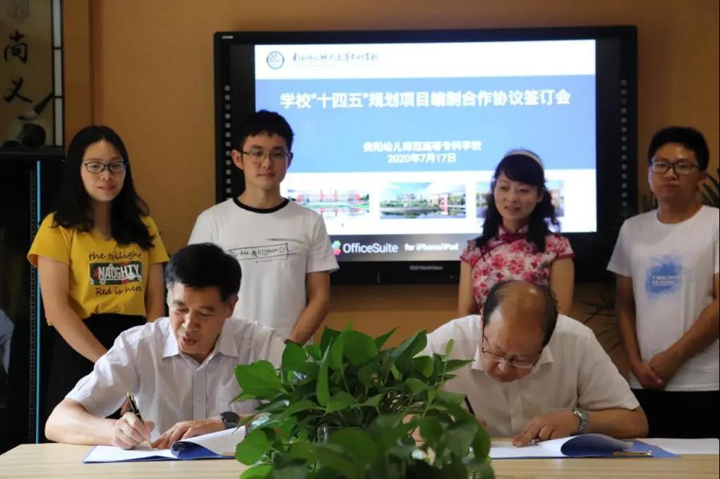 最后,李炳昌代表学校与章建新教授签订贵阳幼儿师范高等专科学校“十四五”规划项目合作协议。