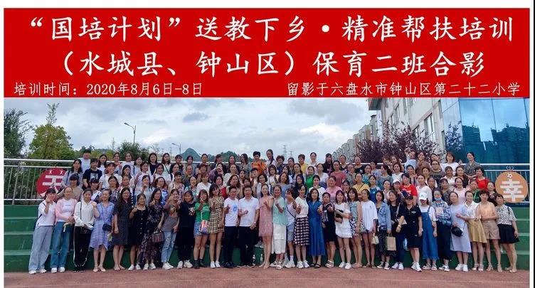 2020年是脱贫攻坚收官之年,为贯彻落实党的十九大精神,助力脱贫攻坚,同时做好疫情防控与教育培训两不误,贵阳幼儿师范高等专科学校、贵州省幼儿教师发展中心共同组建专家团队于2020年8月6日-8日赴六盘水市水城县、钟山区开展“国培计划·送教下乡”教育精准帮扶活动。此次培训覆盖水城县、钟山区48个乡、镇、社区,来自255个乡、镇幼儿园的一线保育员、教师、保健医生、园长共计1015人次参与了培训,实现了送教当地精准帮扶全覆盖。