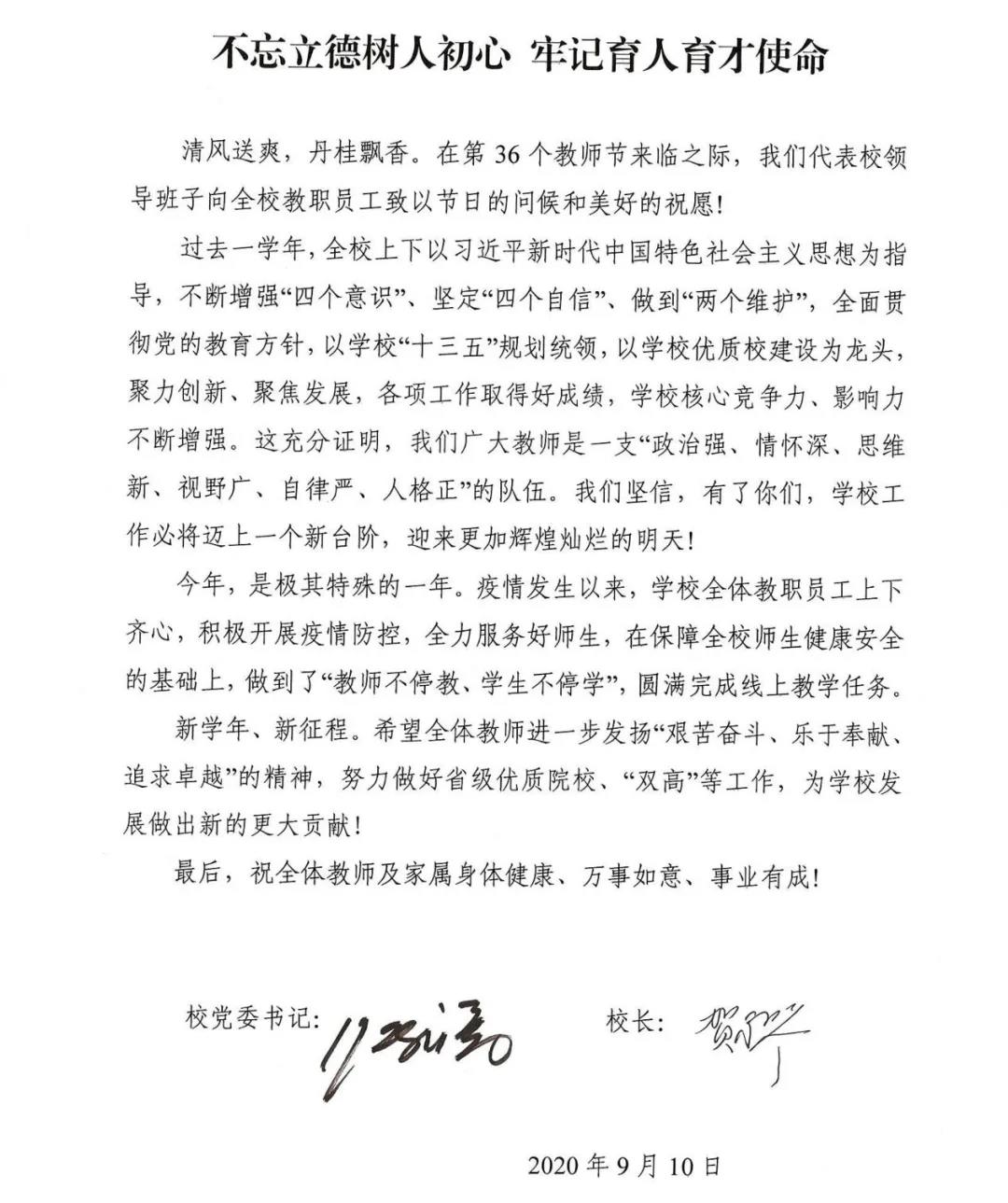 致全校教职员工的一封信 | 不忘立德树人初心 牢记育人育才使命