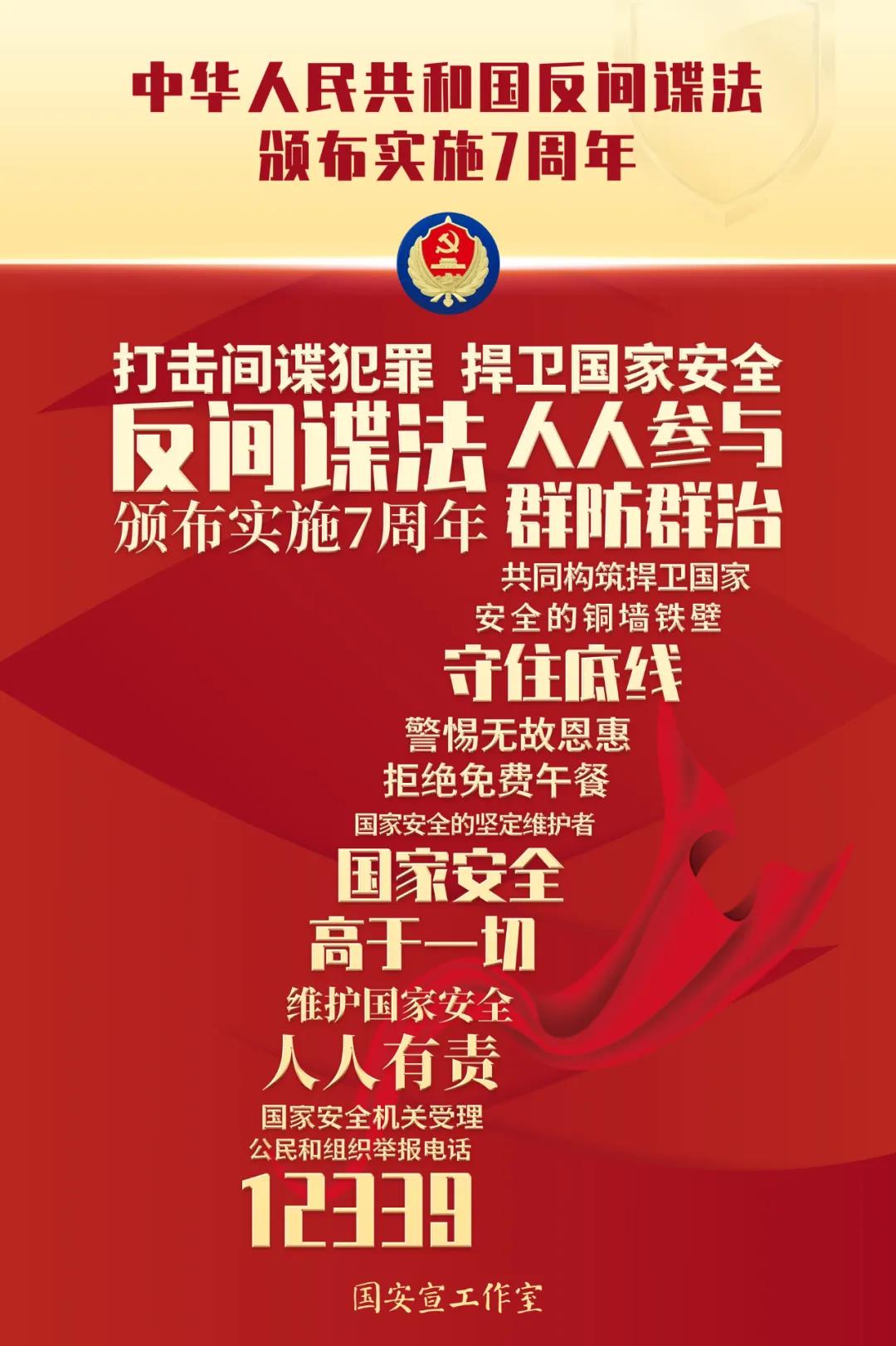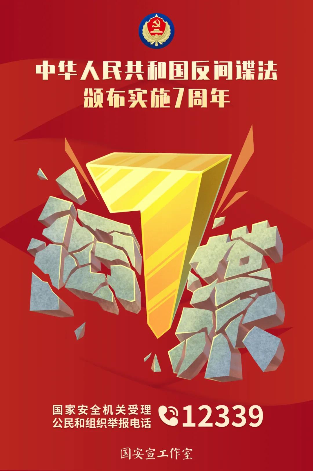 2021年11月1日是反间谍法颁布实施七周年,国安宣工作室发布了一组主题海报,与大家一起分享。