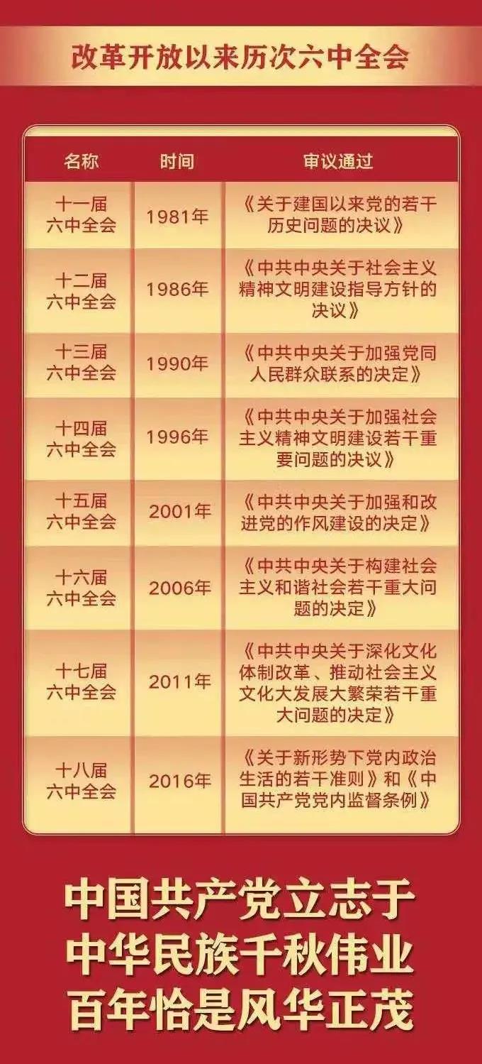 一图读懂十九届六中全会公报!历次六中全会通过决议速览