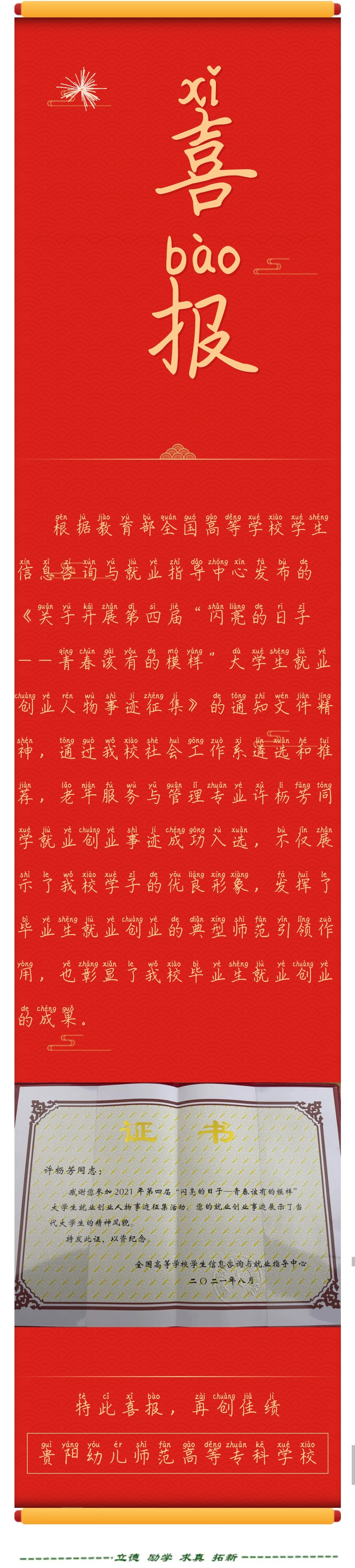 喜报 | 我校学生入选2021年第四届“闪亮的日子—青春该有的模样”全国大学生就业创业人物 特此祝