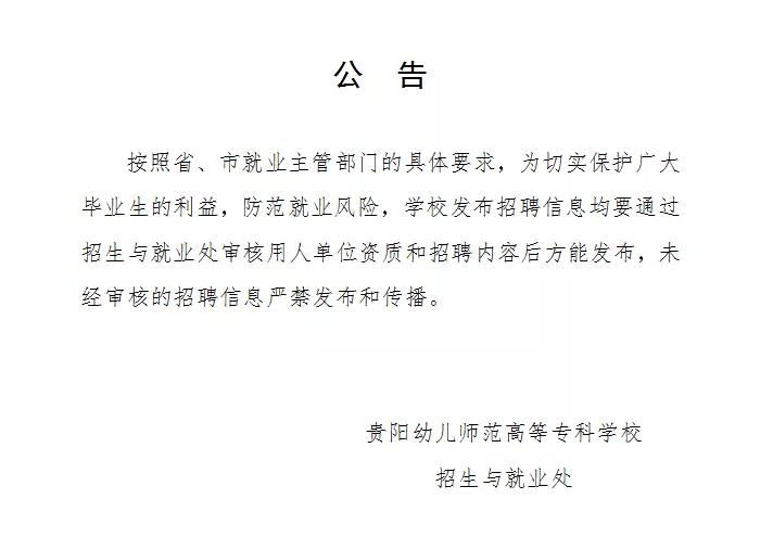 贵阳幼高专发布公告:未经审核的招聘信息严谨发布和传播