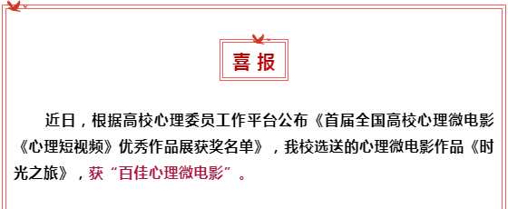 喜报 | 我校选送作品获首届全国高校心理微电影(心理短视频)“百佳心理微电影”