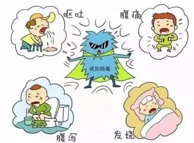 主要症状:腹泻、腹痛、恶心、呕吐,可伴有低热、头痛、乏力及食欲减退;粪便为黄色浠水便,患者经常无预兆剧烈呕吐,呕吐物有感染性,成人腹泻较突出,儿童呕吐较多。诺如病毒潜伏期为24~48小时,病程为自限性,一般2~3天即可恢复。