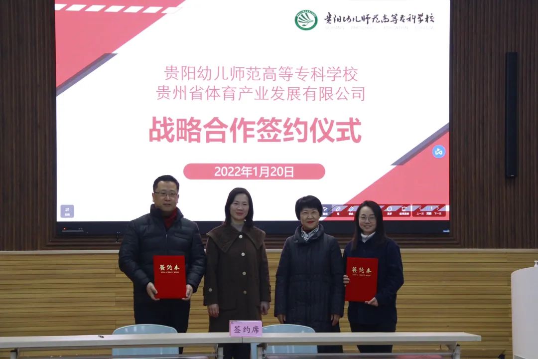 为贯彻落实习近平总书记关于体育强国建设的重要指示和《关于深化体教融合,促进青少年健康发展的意见》文件精神,充分发挥双方在贵州幼儿体育教育发展中的先锋作用。1月20日,我校与贵州省体育产业发展有限公司在时光校区举行战略合作签约仪式,并为“贵体实验幼儿园”项目挂牌。