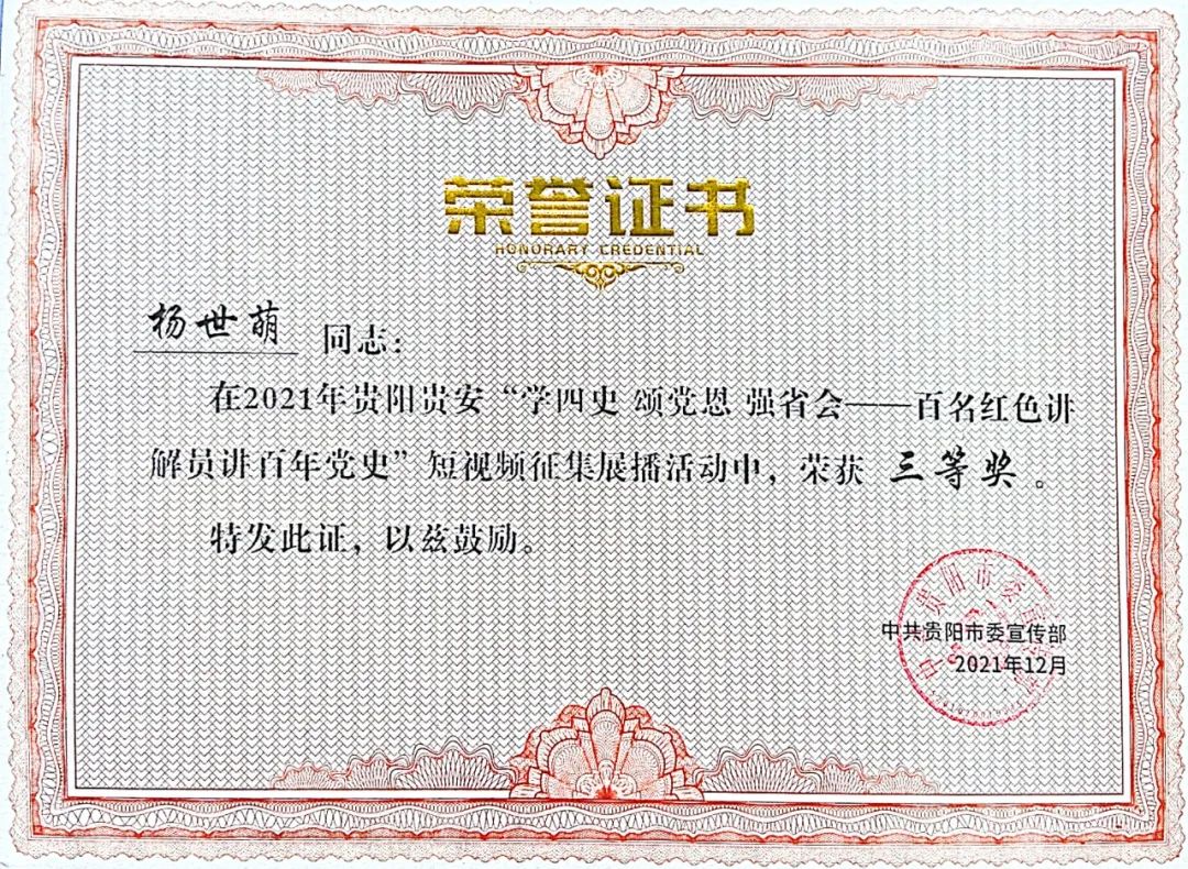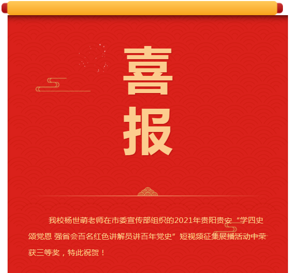 喜报 | 我校教师在2021年贵阳贵安“学四史 颂党恩 强省会百名红色讲解员讲百年党史”短视频征集展播活动中荣获佳绩