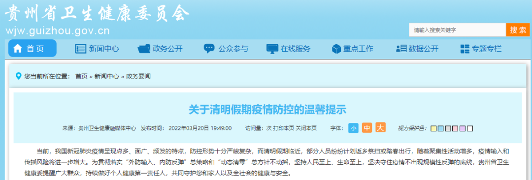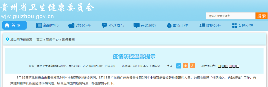 3月20日,贵州省卫健委再发疫情防控最新提示,具体如下: