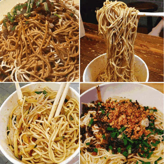 而凉粉面是“寒食”中的必备小吃之一,里面放有葱花、蒜泥水、折耳根、油炸花生米、酸萝卜颗颗、脆哨、油辣椒、酱醋麻油、榨菜丝、绿豆芽……林林总总十几样,下料足、食材好,老少皆宜,甚至四季不忌。