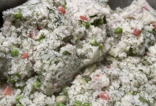 ◆黔南三都:糯米要用花椒等香料炒熟,打成细面后,加入清明菜、猪油、油渣、香葱等,和在一起蒸熟了吃。