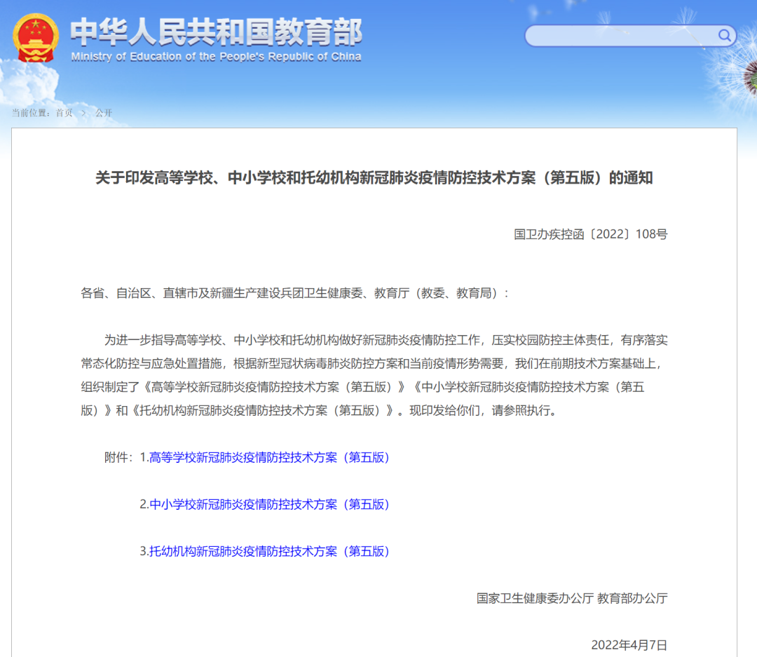 为指导中小学校做好新冠肺炎疫情防控工作,压实校园防控主体责任,有序落实常态化防控与应急处置措施,根据新型冠状病毒肺炎防控方案和当前疫情形势需要,对《中小学校新冠肺炎疫情防控技术方案(第四版)》进行修订,形成本版方案。