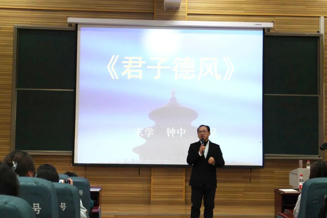 最后,钟老师带着大家吟诵“富与贵,是人之所欲也,不以其道德得之,不处也。贫与贱,是人之所恶也,不以其道得之,不去也。君子去仁,恶乎成名?君子无终食之间违仁,造次必于是,颠沛必于是。”他希望同学们了解师德的知识内涵和文化品位,在专业学习中不断自我提升,自我修养,未来能够秉持立德树人的根本理念,以德育人,以德施教。