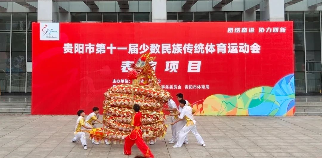在刚刚过去的贵阳市政府主办的贵阳市第十一届少数民族传统体育运动会表演竞赛中,在蒙祖敏老师、田小飞老师、罗小勇老师的率领下,我校舞龙代表队荣获表演项目三等奖,舞狮代表队荣获表演项目二等奖,恭喜获奖的各位同学和老师,我校板鞋代表队也在今天的比赛中以优异的成绩挺进决赛,预祝他们取得优异成绩!