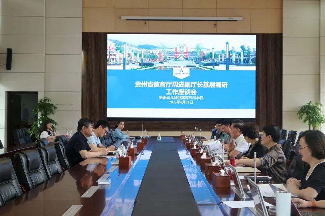 座谈会由翟理红主持。会上,赵雅卫汇报了学校近年来国培工作和贵州省幼儿教师发展中心工作的情况。与会人员分别就学校托幼融合儿童园、校园安全等方面工作进行了汇报。周进对学校近年所取得的成绩给予肯定,就学校的幼儿教师职后培训、托幼融合建设、学生安全、家校合作常态机制等方面的工作作出建议和指导。他指出,学校教育要注重三个敬畏,第一是敬畏生命,第二是敬畏规律,第三是敬畏未来。他说,在今天的调研中,他感受到贵阳幼高专对教育的专注,学校非常关注教育前沿问题、教育实践问题,教学理念非常突出,让人印象深刻。他表示,省教育厅将对学校的工作给予帮助和支持,希望贵阳幼高专把更好的理念、更好的教育成效辐射到广大老百姓身上,办人民满意的教育。