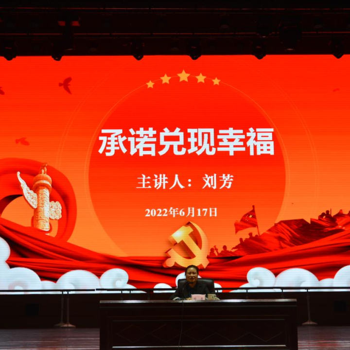 刘芳老师以《承诺兑现幸福》为题,围绕省第十三次党代会精神主题,通过“阅、说、税、悦”四个字讲述了自己对省第十三次党代会精神的感悟。第一个字是“阅”。刘芳老师是贵州全民阅读推广大使,她希望我们要多读乐观向上的书、大部头的书、历史传记等,才能拓展视野,开阔眼界,兑现自己的梦想。第二个字是“说”。“说什么,跟谁说,怎么说?”在刘芳老师看来,家庭成员之间说话要算话,这是最基本的家风;立足社会,遵守人与人之间的承诺,那是民风;党委政府能兑现自己说的话,老百姓才相信你,那是政风。一百年来,党对老百姓的承诺一个一个地实现了,才有了我们向世界庄严宣告,中华民族迎来了从站起来、富起来到强起来的伟大飞跃。第三个字是“税”。刘芳老师说吃饱穿暖是幸福的基础,一个人的幸福感来自个人梦想的实现,还必须有对社会的贡献和付出。作为人民教师要对得起党委政府对教育的重视,对教师的尊重,对得起纳税人。第四个字是“悦”。即是兑现自己的内心,做好自己喜欢的工作。刘芳老师通过自己作为一位盲人在贵州便利的出行,畅谈了党和国家强盛、社会发展带来的红利。