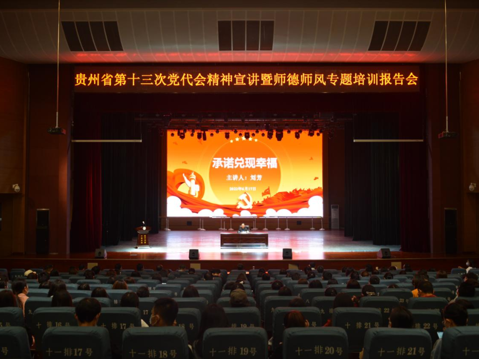 6月17日,贵阳幼儿师范高等专科学校举行贵州省第十三次党代会精神宣讲暨师德师风专题培训报告会。省第十三次党代会代表刘芳受邀为我校师生作宣讲培训。校党委书记张曦,党委委员、组织人事部部长任重等校领导出席报告会,党委委员、纪委书记陈尧年主持会议。来自各处(室)、系(部)、中心的主要负责同志,部分党员教师、学生,年轻教师和入党积极分子代表等现场聆听了报告。