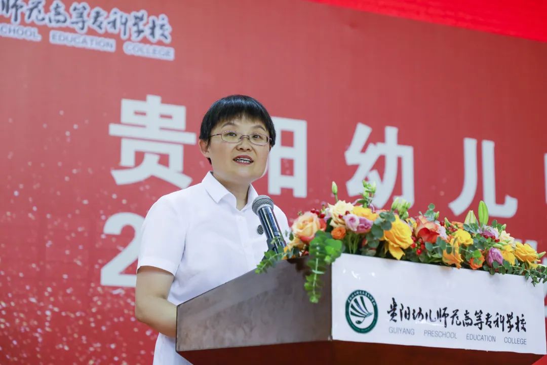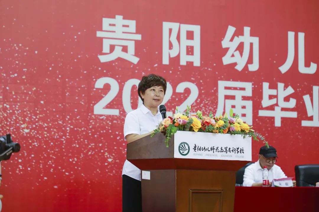 校长翟理红以《青春之心》为主题为2022届毕业生致辞。她在致辞中说道,三年时光历历在目,我们曾一起见证祖国70华诞,齐声唱响《我和我的祖国》;一起抗击疫情,守望相助,共克时艰;一起追忆党的百年征程,共同许下“请党放心,强国有我”的青春誓言;一起见证北京成为“双奥之城”,以青春之名礼赞中国共青团百年风华;一起迎来新国发2号文件,这是贵州继续迎来下一个“黄金十年”的重大历史机遇;一起齐心协力,迎接了学校学前教育师范专业认证的大考。如今,也一同迎来专属于2022届的毕业季。“无论你们选择去往何方,都要向光前行,学校是你们永远的大后方!”