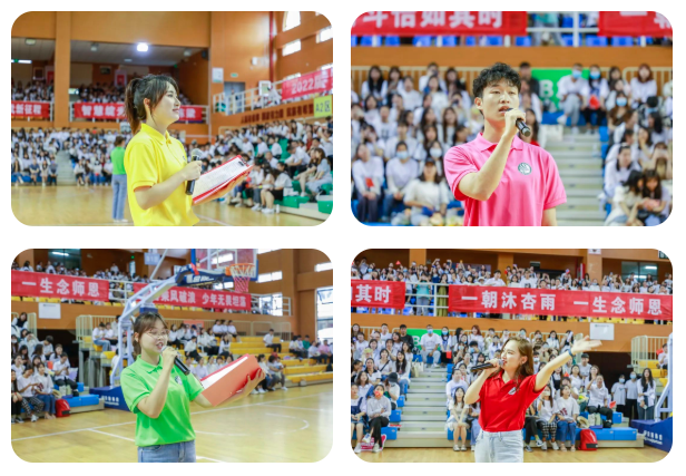 学校教师代表、优秀校友代表、毕业生代表分别登台发言。