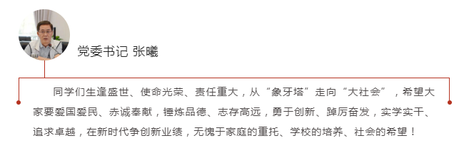 张曦宣布毕业决定书。他对2022届的同学们顺利完成学业,即将踏上新征程,走向广袤天地表示衷心祝贺。