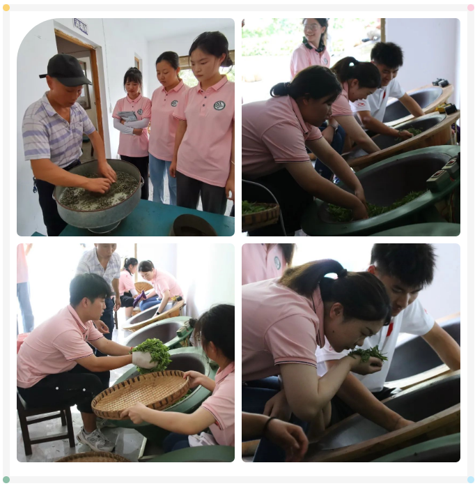 经过两小时的采摘,同学们虽然嘴里说累却还是一直在坚持,同学们将采集到的茶叶堆放在一起,看到堆成小山的成果,大家顿时感到油然而生的自豪感和满足感,在茶师傅的耐心指导下,大家对茶叶进行加工制作,做出了清香可口的手工茶,品尝自己的劳动成果后,甘甜的茶水让同学们体会到劳动的艰辛和不易,更加体验到劳动之美,今后也更加珍惜别人的劳动成果。
