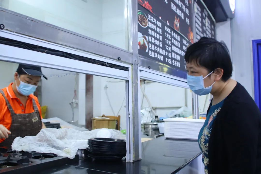 在沁园餐厅一楼用餐大厅,翟理红来到学生身边,亲切地询问学生在校的生活感受和学习情况,并邀请学生为学校的管理服务建言献策。她仔细查看早餐窗口的就餐情况,对存在缺乏自我防护意识的学生进行温暖提示,并要求食堂和后勤处要做好提示和引导。