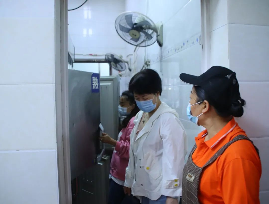 9月6日上午7:30,校长翟理红,党委委员、副校长潘丽芬,党委委员、副校长张世琴到我校学生食堂回访整改情况,并深入学生中了解学生的生活情况。