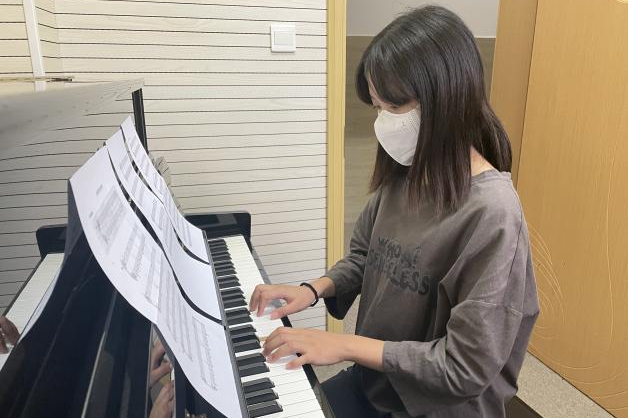 在琴房钢琴的黑与白中,同学们用指尖起舞,用音乐浏览世界:激烈如大海的波涛汹涌,干净如山涧的汩汩清泉。时而似飞鸟振翅,时而像猛兽呜鸣。她们说道:“虽然校园静默了,但我们没有静默,能用钢琴来创建一片天地,这也是我们独有的浪漫。”
