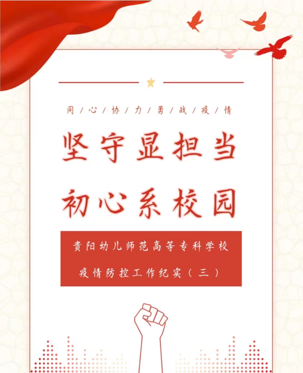 自本轮新冠疫情发生以来,贵阳幼儿师范高等专科学校全员进入“战时状态”,在校园疫情防控的“主阵地上”,筑起捍卫校园的铜墙铁壁。学校党委高度重视,党政领导靠前指挥,各部门迅速集结,启动学校疫情防控相关机制,实施校园静态管理,始终把对全体师生的关心关爱摆在突出位置。