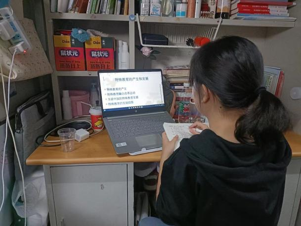 为了学好每一节课,不落下一点进度,同学们的云端学习“奇招”百出。线下不见我,线上必定有我,没有条件也要创造条件。不能当面请教问题,大家就在线上追着老师刷题;不能去钢琴室和老师上课,大家就去琴房和老师连线上课;不能去舞蹈室跳舞,大家就在自己的宿舍、宿舍阳台、公共楼道拍视频。