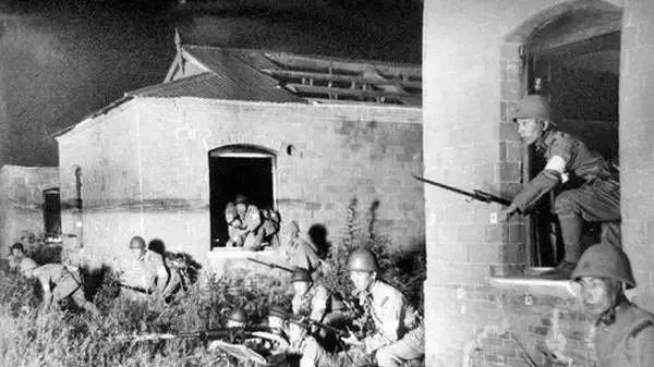 1931年9月19日凌晨,日军炮火轰击北大营三小时后,有准备的日军步兵冲进北大营。日军左胳膊以白布条为记号