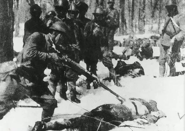 于是,一场没有抵抗的屠杀开始了。据史料记载,日本兵一开始都是用刺刀扎,东北军士兵赤手空拳,被扎死的很多,钻到床下的士兵都被机关枪扫射而死。
