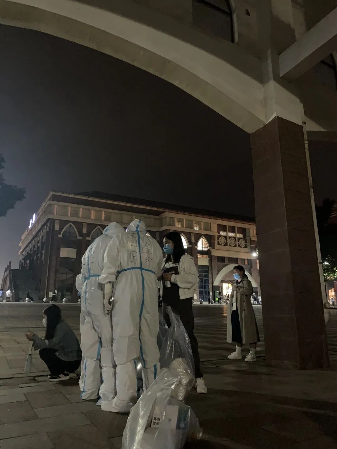一起坚守夜间核酸检测工作现场