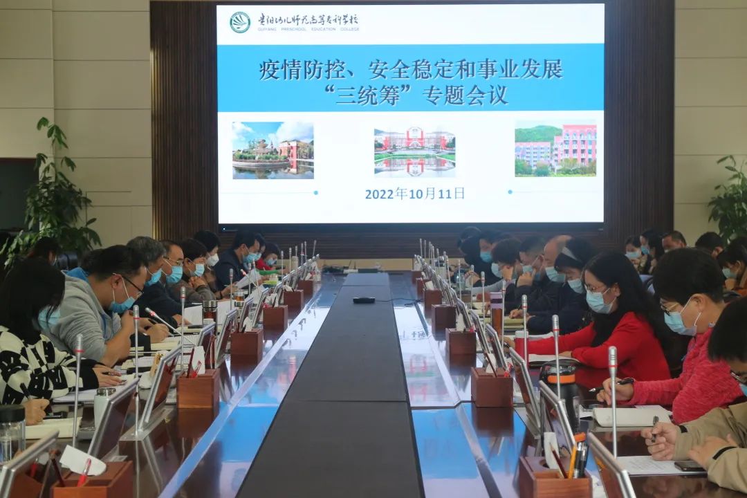 10月11日上午在峻德楼一楼会议室召开了学校“疫情防控、安全稳定和事业发展‘三统筹’专题会议”,党委书记李华荣,校长翟理红,党委副书记李炳昌,党委委员、副校长潘丽芬,党委委员、纪委书记陈尧年,党委委员、副校长张世琴,党委委员、组织人事部部长任重出席会议。全校科级以上干部、全体专职辅导员参加会议。