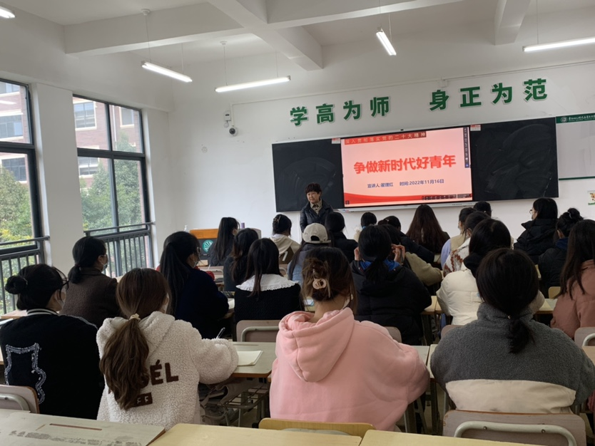 为引导学生深入学习贯彻党的二十大精神,号召学子们争做新时代好青年,近日,校长翟理红以“学习党的二十大精神,争做新时代好青年”为题为学前教育与特殊教育系学生上了一堂生动的专题思政课。