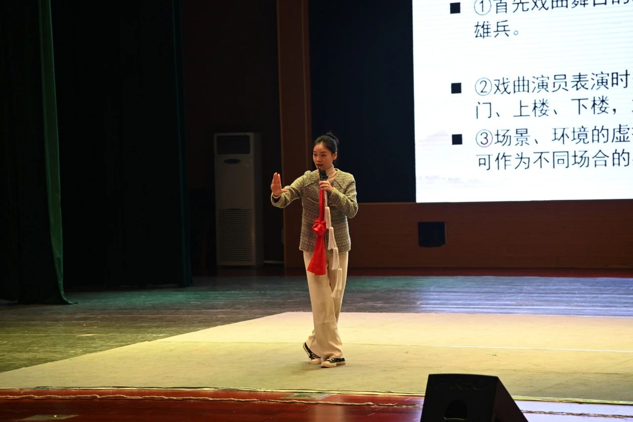 演出开始前,贵阳市剧协理事、贵州京剧院优秀青年演员李冉向大家介绍了京剧的历史与发展、京剧的表演艺术形式以及京剧的角色等知识,并邀请部分学生代表上台学习简单京剧身段动作,感受京剧的文化魅力。