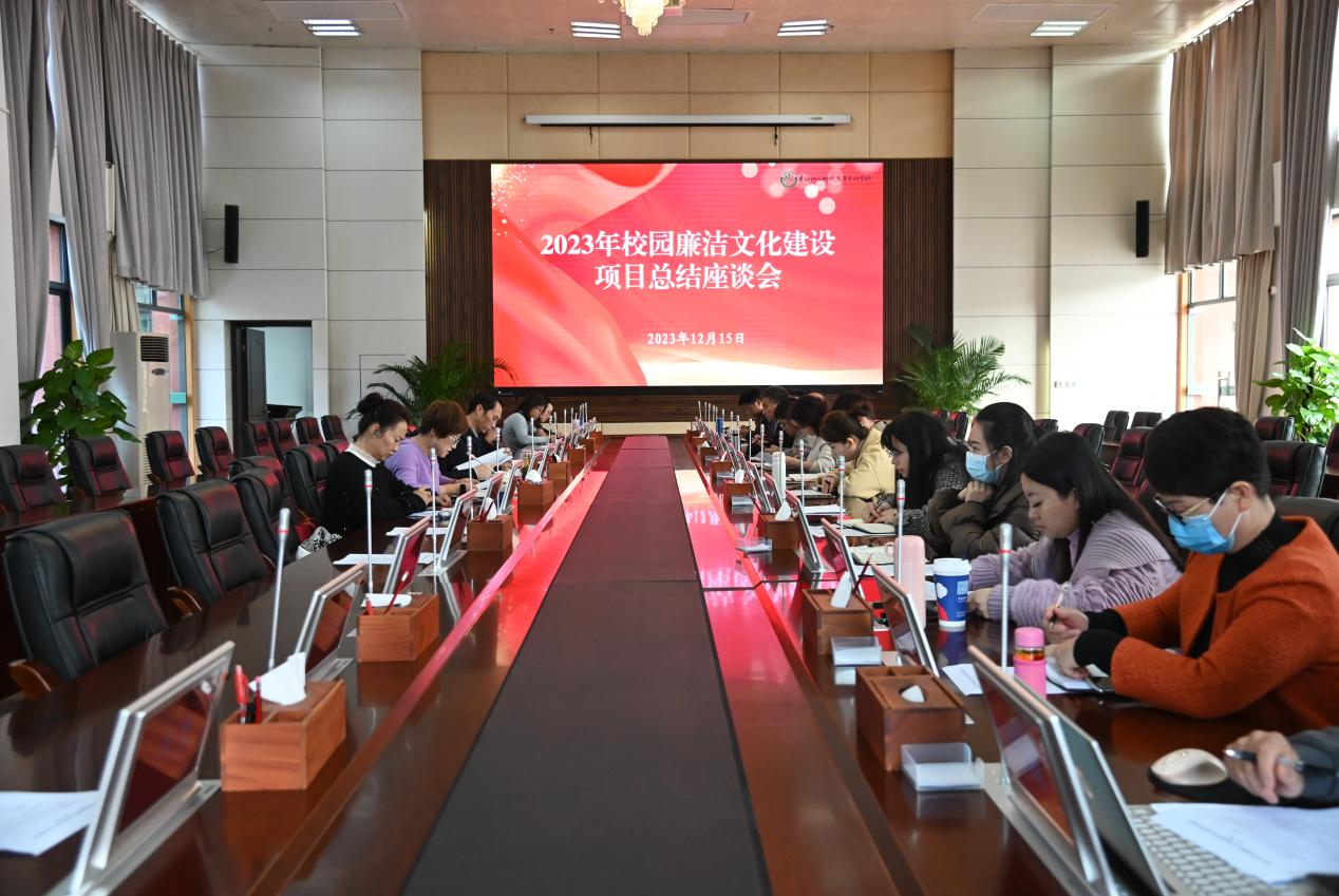 为全面回顾学校2023年廉洁文化、清廉学校建设的工作情况,总结经验成绩,查找问题短板,研讨2024年相关工作,12月15日,校纪委组织召开2023年校园廉洁文化建设项目总结座谈会。各党总支(直属党支部)主要负责人、廉洁文化建设项目涉及部门主要负责人、校纪委全体人员参加。会议由校纪委副书记李少文主持。