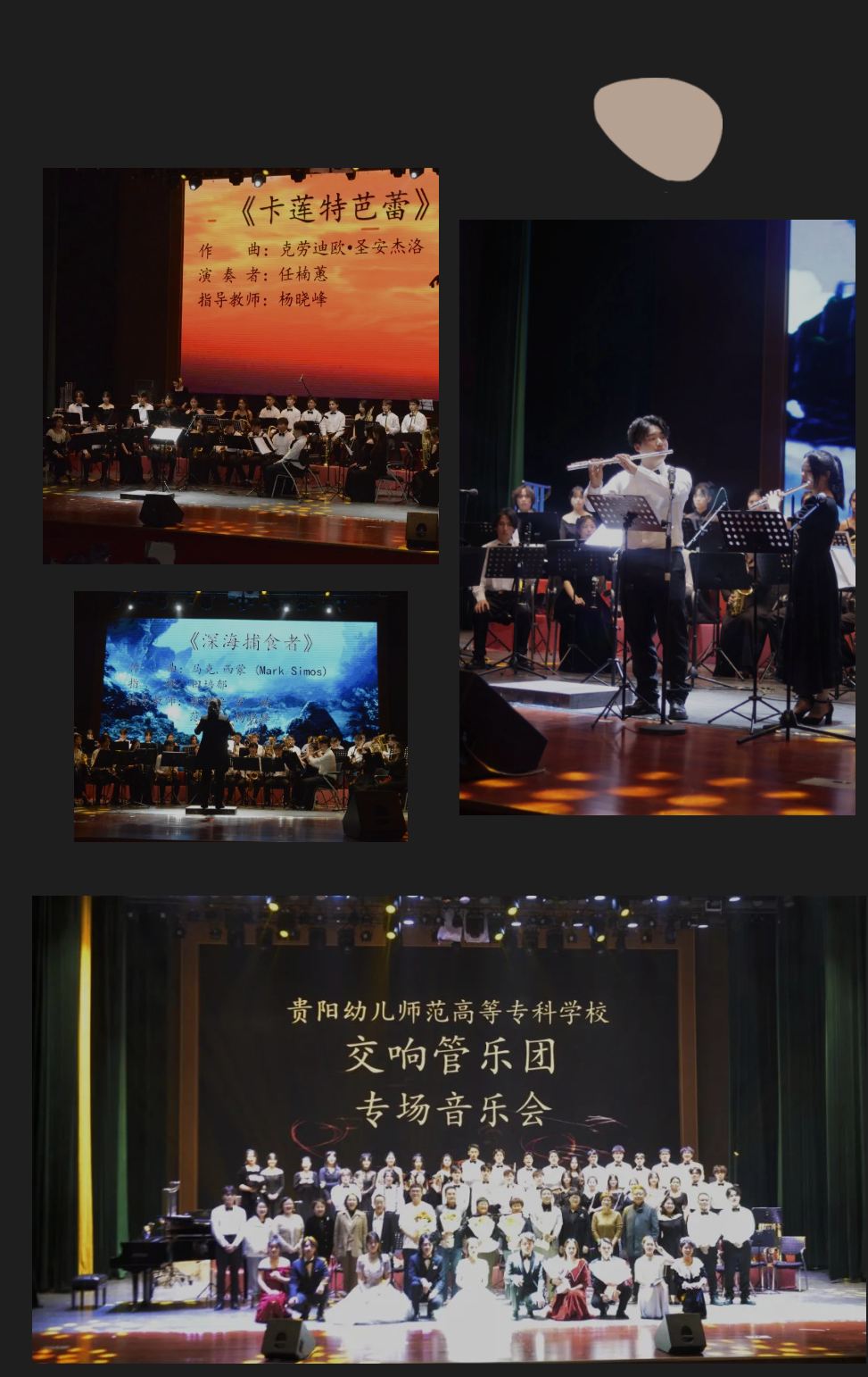 本次音乐会不仅有团队演奏,也为学生准备了《卡莲特色芭蕾》《kown you by heart》等节目独奏表演。音乐会以一首激情的《灯火里的中国》演奏结束,用嘹亮的歌声歌唱祖国的繁荣昌盛,也展示出学校交响管乐团的特色与成果。