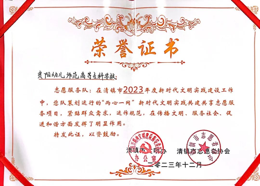 2023年度新时代文明实践建设工作中优秀表现获得荣誉证书!