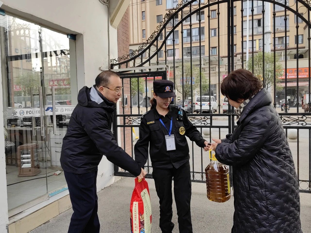 在春节除夕这个举家团聚的温馨时刻,学校的安全保卫、物业管理工作人员依然坚守在岗位上,守护着校园的安宁。校党委书记李华荣和校长翟理红心系校园安全,带队检查校园安全情况,并为这些默默奉献的工作人员送去了温暖和关怀。他们代表学校向所有工作人员致以最诚挚的节日问候和感谢,对大家在节日期间放弃与家人团聚的机会,坚守岗位、认真履职表示高度赞赏。